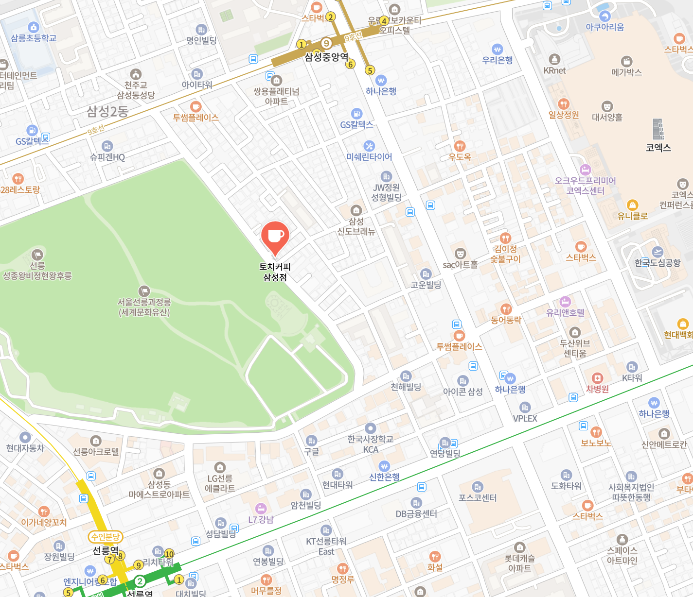 선릉역과 삼성중앙역 사이, 선정릉 바로 옆이라 날씨 좋은 계절에는 산책을 겸해 들러도 좋은 곳에 있다.