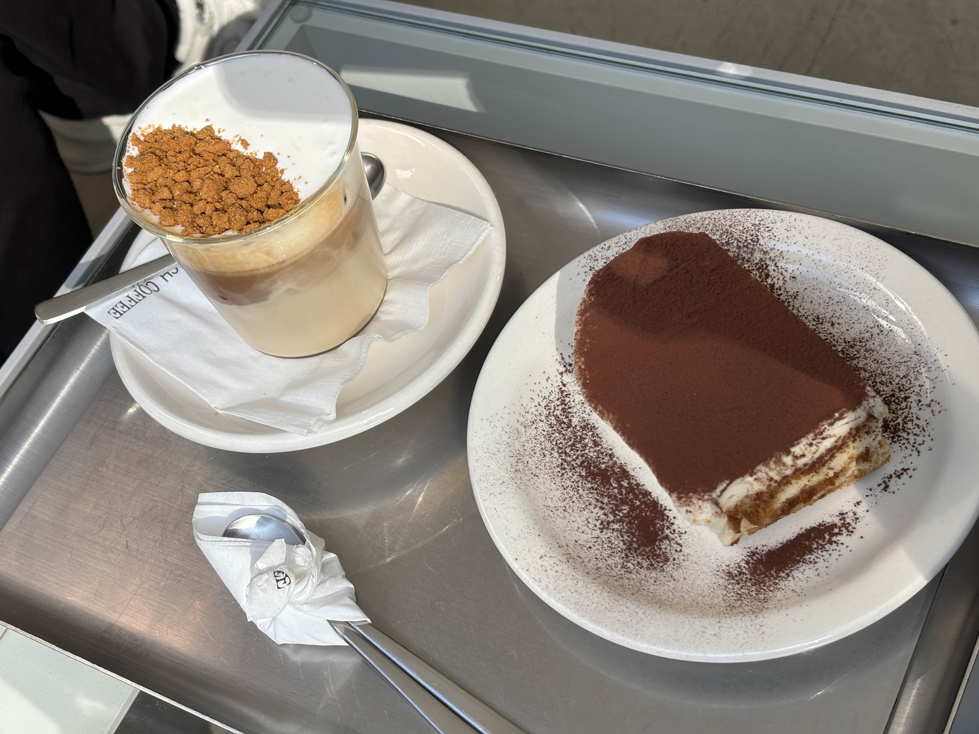 2인이서 음료 둘, 티라미수 하나를 주문했다.