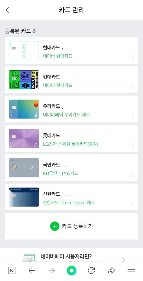 카드로 사는 사람은 등록 가능한 모든 카드를 네이버페이에 올려 둔다