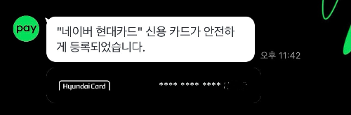 카드 신청과 함께 네이버페이에 자동으로 카드 등록이 되는 편리함