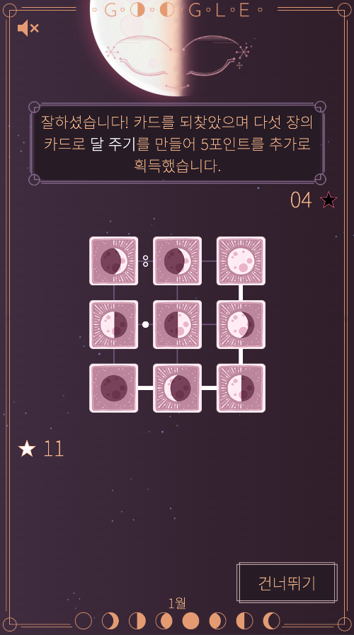 머리 식히면서 하기 알맞은 난이도와 재미를 선사하는 구글 두들 중 그간 제일 재미있게 한 게 달 위상을 연결하는 바로 이것이었다